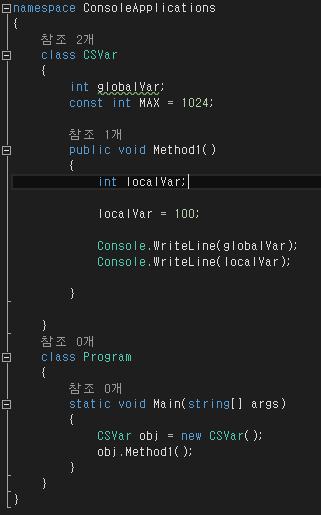 - Method1을 호출하면 전역 변수(필드)와 지역 변수의 값이 각각 출력됨