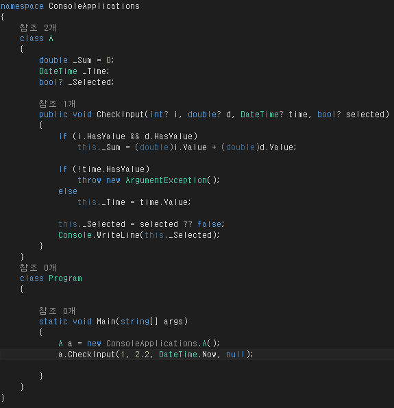 Nullable은 HasValue를 이용하여 NULL 상태를 체크할 수 있음